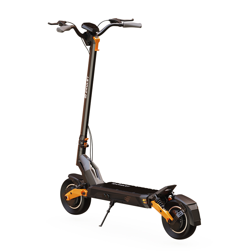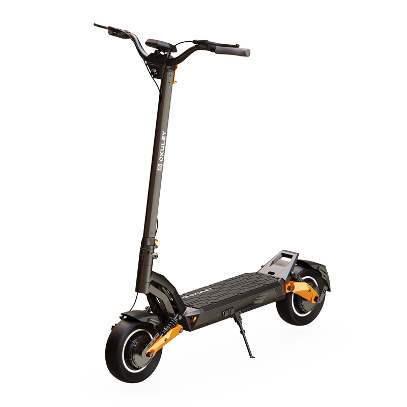 Ang OKULEY M10 All Terrain Electric Scooter ay nilagyan ng 10-pulgadang pneumatic na gulong, na nagbibigay ng mahusay na pagkakahawak at ginhawa sa pagsakay. Ang natatanging disenyo nito ay nagbibigay-daan upang mabilis itong ma-disassemble. Madaling mapanatili. Ang front at rear na double spring shock absorbers ay maaaring mabawasan ang epekto mula sa mga magaspang na kalsada. Bilang karagdagan, nagbibigay din ito ng mga opsyon sa disc brake at hydraulic brake para sa pinabuting kaligtasan.